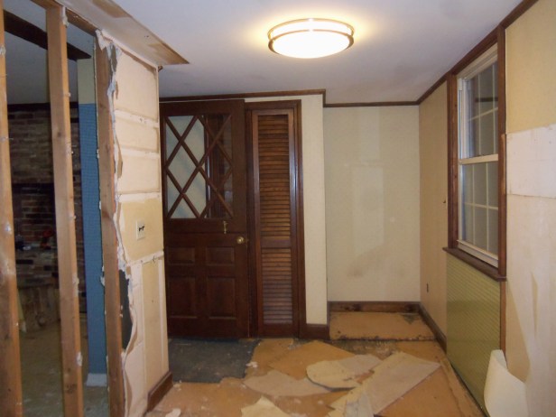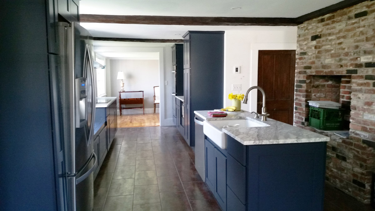 In early 2018 the new owners began an ambitious plan to renovate the interior and move in by April. I was hired as the carpenter, primarily for the kitchen, the entrance room, and a room with a concrete floor that connected the two. I was assisted with framing, drywall, and cabinet installation by my friend Tim Gillette. Also on the job were Donald Galicki Electrical Company, Jay from Russell Plumbing, Craig Moore of Rockport refinishing and repairing plaster, floor sanders, a tile crew, and Horatio and his crew from Sullivan Painting.